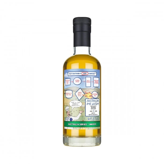 A 100% Australian Rye whisky from That Boutique-y Rye Company – a bottling from Belgrove Distillery, in Tasmania Australia. The Belgrove Distillery is well renowned for its distiller Peter Bignell, ‘The Mad Scientist’ who recycles materials for his distillery and has very unconventional techniques.